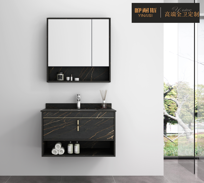這一點,咿耐斯衛(wèi)浴柜廠家最新推出的酒店風浴室柜,就完全符合當下市場流行趨勢及用戶的審美需求。在顏色上,浴室柜主要采用了勞倫黑金經(jīng)典色,黑金表層一體式的仿石紋理,將巖板的高冷和實木的溫暖感完美結合,既時尚又大氣,盡顯都市氣質。材質方面,則優(yōu)選多層實木板為主材,加上面漆處理工藝,令產(chǎn)品不僅具有很好的耐腐蝕、耐刮磨、防火耐高溫性能,且不吸污,易清潔,有臟污濕毛巾擦拭即可清理干凈,非常便捷。